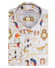 Claudio Lugli CP6639 Mens Leaves Print Slim Fit Shirt - White